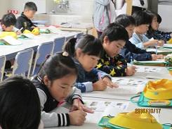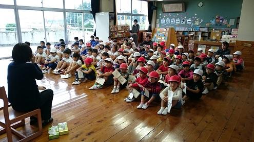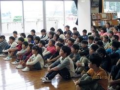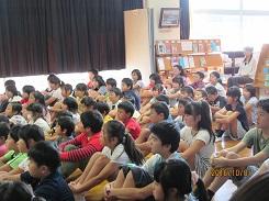 熊田先生は1・と2年生に2年教室で、「にゃーご」「ねこどけい」「ねこ どんなかお」と猫を題材にしている絵本3冊を読み聞かせてくださいました。また、井田様は3年生~6年生に多目的ホールで、「少年と子だぬき」「これ なんとよむ? たべもののかんじ」を読み聞かせてくださいました。