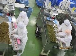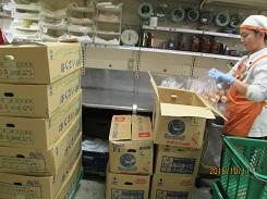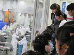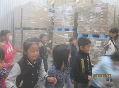 学校長に出発のあいさつをしてから市バスに乗り込み、まずは「(株) 壮関」で工場見学をさせていただきました。(株)壮関やこの工場のことについての説明を聞いた後、工場の中を見学しました。-10℃になっている冷凍倉庫の中も見学させてくださいました。気温が低い日だったので、冷凍倉庫の中はとても寒く感じた児童が多かったようです。製品開発や工場内での仕事など、勤めている人々の努力などについて理解が深まったことと思います。
