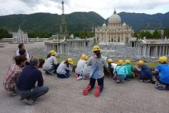 10月18日に、6年生が校外学習を東武ワールドスクエアで行いました。社会科や総合的な学習の時間の学習で、世界を代表する名所・史跡や歴史的建造物についての見学を実際に行うことは難しいので、ワールドスクエアの1/25縮尺の模型で、効率よく当時の文化や建築技術について触れ関心を高めることを目的としています。