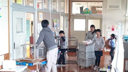11月7日の放課後、各教室のワックスがけを教職員で行いました。11月8日の朝は、ワックスがけのために廊下に出しておいた机や椅子は、登校した児童が順次教室に運び込みました。低学年の机や椅子は、高学年の児童がお手伝いをしてくれました。