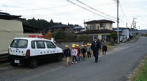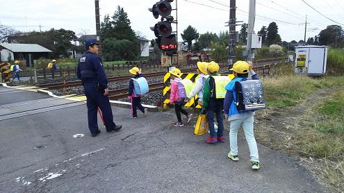 11月2日は、矢板市小学校球技大会のため、4年生以上が早く登校しました。そのため、3年生以下は臨時登校班での登校となりました。登校班の中で、1年生の占める割合の多いつつじが丘の登校班の見守りのために教頭先生が行ってみると、数名の保護者の方も登校を見守ってくださっていたほか、太鼓塚踏切付近で矢板警察署乙畑駐在所の方が児童の見守りをしてくださっていました。おかげさまで怪我等もなく、安全に登校することができました。ありがとうございました。