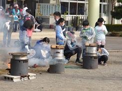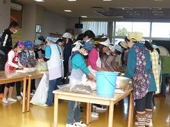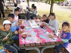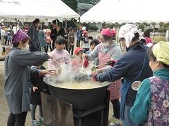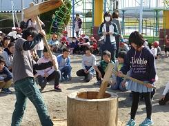 低学年は高齢者と昔遊びの体験を、中学年以上はけんちん汁、焼芋、餅つき、焼きそばの準備を体験しました。餅つきの体験も全員が行うなど、普段の授業では体験できない学習をたくさん行うことができました。天候にも恵まれ、おいしそうにけんちん汁を食べている姿や、お餅や焼きそば、焼芋を口に運んでいる児童の姿がたくさんありました。