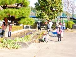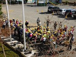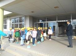 11月9日の午後、就学時健診を行ったので、在校生はいつもより早い13:00下校でした。検診受付と児童の下校の時間帯が一緒なので、児童は国旗掲揚塔前に集合して下校しました。