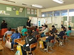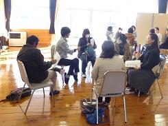 児童が検診をしている間、保護者の方は男女共同参画啓発団体「グループあい」の方々の紙人形や、社会教育指導員による親学習プログラムでの話し合いで、「子育て学習」をしました。また、矢板市教育委員会生涯学習課から、乙畑ひまわりスクールについての説明もありました。