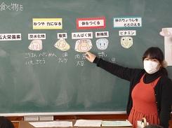 11月18日の3校時に5年生が、4校時に6年生が、片岡学校給食協同調理場の栄養士の方を講師にお招きして栄養指導を行いました。