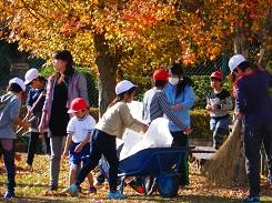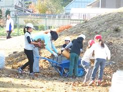 11月18日の昼休みに、緑の少年団活動を行いました。本日は、校庭の落ち葉掃きです。