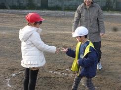 縦割りのひまわり班対抗で1班から6班までが、相手を替えて2回戦を行いました。競技時間の中で、相手チームに置いてあるカラーコーンの場所まで勝ち続けられた人が何人いるかを競いましたが、勝ち続けてあっという間にゴールする児童や、一進一退を繰り返すチームがあり、短時間でしたが楽しめた集会でした。