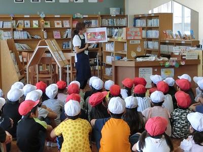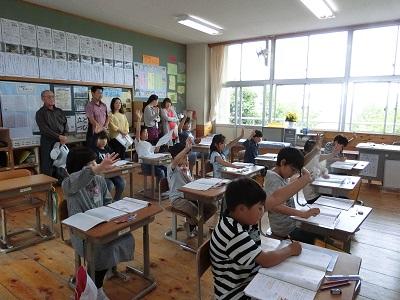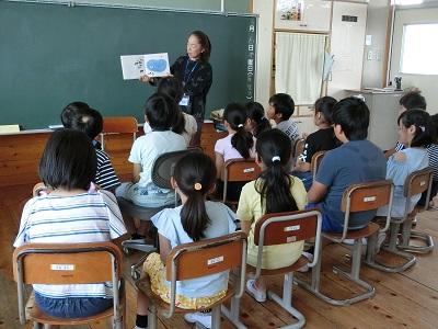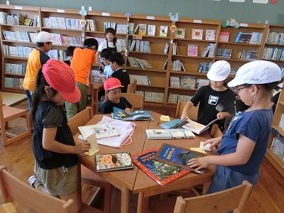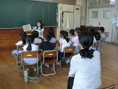 読み聞かせの後は本を借りる児童でカウンターがいっぱいになりました。今年から図書事務の先生が週2回来てくださることになりました。蔵書数もふえました。どんどん本を借りましょう。