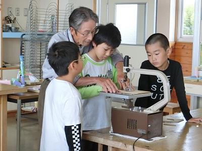5年生は図工で電動のこぎりを使います。今日は、矢板ぶらぶらクラブより3名のボランティアの皆様にお越しいただき、電動糸鋸の使い方や刃の替え方を教えていただきました。最初は不安そうだった5年生も、ボランティアの方と一緒に作業することで、どんどん進み、作品作りに夢中でした。ぶらぶらクラブの皆様大変ありがとうございました。
