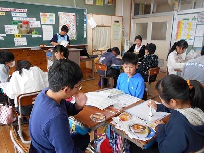 片岡小学校の栄養教諭の先生から、来校していただき、3年生と6年生が食に関する学習をしました。3年生は「食べ物の3つの働きを知って、何でも食べよう」6年生は「栄養のバランスを考えた給食の献立を立てよう」という内容でした。6年生の立てた献立はいつか本当に、給食に出るかもしれません。栄養のことを質問しながら、一生懸命献立を考えました。