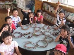 1年生が生活科で育てたあさがおのつるを利用して、リースをつくりました。これからかわいい飾りをつける予定だそうです。どんな作品ができあがるのでしょう。