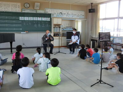 5月25日(火)に、創立記念集会を行いました。今年度で、本校は141周年となります。本校に所縁のある薬王寺の御住職様をお招きして、短い時間でしたが、オンライン形式(3年生は対面)の講話をいただきました。乙畑小の歴史に触れることができました。