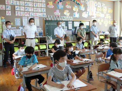 7月6日(水)の一斉下校に合わせて、矢板市少年指導員さんによる「あいさつ運動」がありました。4名の少年指導員さんが来校してくださいました。代表の方からお話があり、あいさつの大切さと本校児童のあいさつの良さを褒めていただきました。その後、下校班の児童と一緒に歩きながら下校指導も併せてやってくださいました。お忙しい中、大変ありがとうございました。