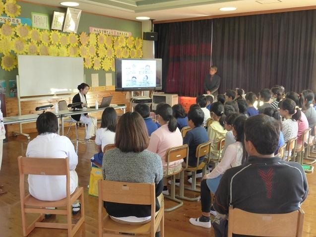 11月19日の2校時は下学年を対象として、3校時は上学年を対象として、国際医療福祉大学塩谷病院の看護師さん三名の方に手洗い指導を行っていただきました。