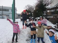 休み時間は第2校庭で雪遊び!こんなにたくさんの雪がふるのはなかなかないので、大きな雪だるまをつくったり、雪合戦をしたり、楽しい楽しい昼休みでした。