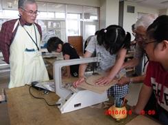 6月8日(金) 3・4校時、5年生の図工「糸のこ スイスイ」の学習に、ボランティア「ぶらぶらクラブ」の皆さんから来ていただきました。ボランティアの先生から、電動「糸のこ」の操作を手伝っていただき、児童は安全に、イメージ通りにベニヤ板を切ることができました。このあとは、色を付けて、「ホワイトボード伝言板」の完成です。「ぶらぶらクラブ」の皆さん大変お世話になりました。