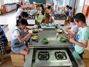 今日は、5・6年生の家庭科の授業で調理実習の様子です。5年生は、野菜サラダとオリジナルドレッシングづくり、6年生は、野菜炒めと炒り卵づくりです。5年生は、初めての調理で、手際の悪さについ手を出したくなるぼどでしたが、失敗も勉強。でも、満足そうな笑顔でできあがった料理を楽しく食べていました。