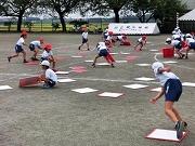 今日の練習は、開会式から閉会式まで、いくつかの種目の練習です。子どもたちの中には、連日の練習で疲れが出てきたり、体調を崩したりしているので、夜は、早寝でゆっくり体を休めるようにお願いします。
