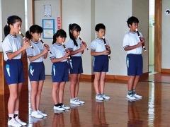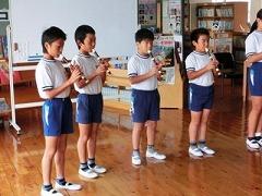 5・6年生は、運動会の練習と同時進行で音楽祭に向けて、リコーダーの練習をしています。曲名は「少年時代」で、少ない人数ながらきれいな音を響かせています。