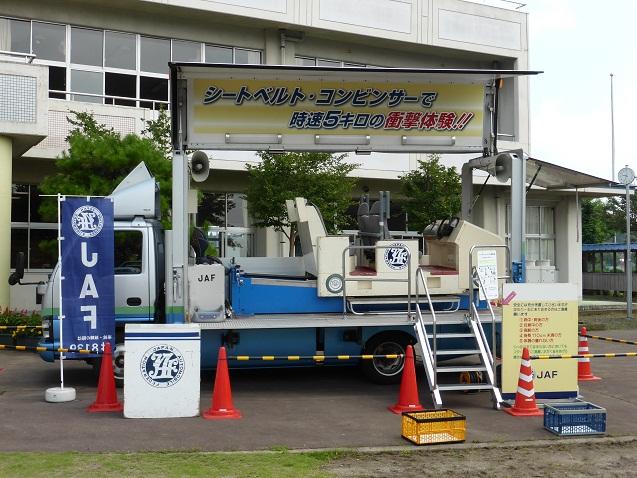 今回の交通安全教室は、JAFのご協力を得て全国で35台(北関東では茨城・栃木の両県で1台)しかないシートベルトコンピンサーを使ってシートベルトの重要性を体験をする学習と、矢板市の交通教育指導員さんから自転車の乗り方についての指導を受けるという内容で実施しました。