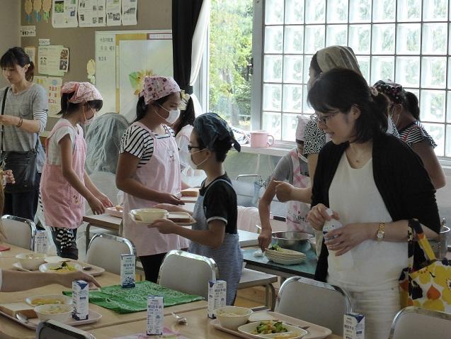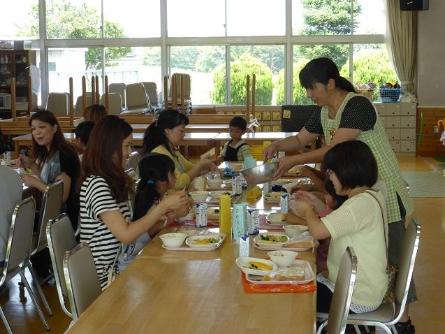どちらの学年も親子で座り、並んで給食を食べました。児童も、いつもより笑顔で食べているようでした。