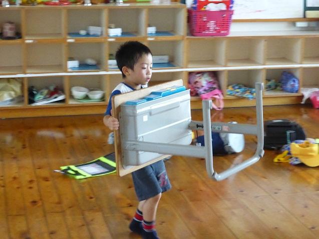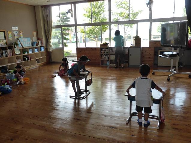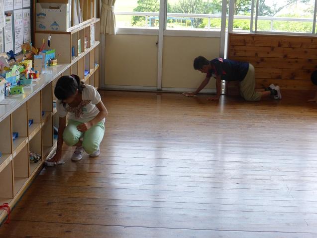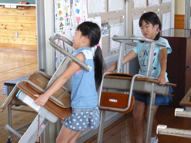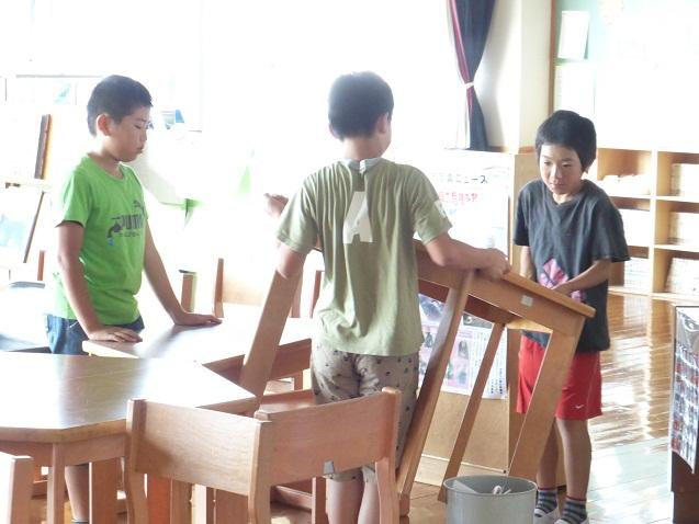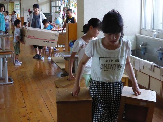 7月13日の朝は、先週金曜日にワックスをかけた教室等に、机等を運び入れました。