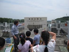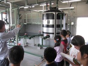 昼食後は、寺山ダムの下流にある寺山浄水場を見学して、河川の水が水道水になるまでを学習しました。