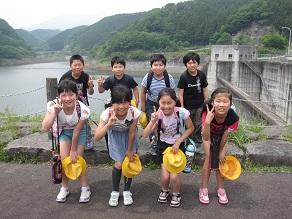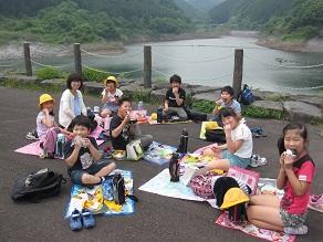 次に矢板市長井にある寺山ダムで見学と昼食を取りました。寺山ダムは、昭和59年度に総事業費約150億円で完成した多目的のセンターコア型ロックフィルダムで、主に宮川・内川の洪水調整、矢板市やさくら市のかんがい用水、矢板市の上水道用水を確保することを目的としています。見学記念の写真を撮って、お昼を食べました。