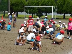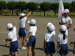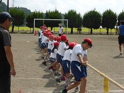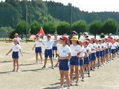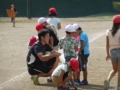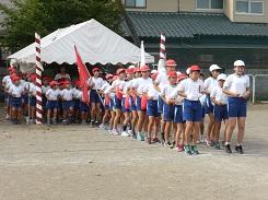 給水タイムのあと、応援合戦の入場を練習し、練習が必要だった応援の振り付け等を紅白に分かれて練習しました。高学年の児童が応援歌の時の動きを、低学年に指導する姿がありました。その後、よさこいソーランの位置を確認し練習を終えました。
