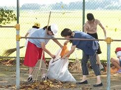 9月2日の清掃の時間に、緑の少年団活動を行いました。本日の活動内容は、運動会に向けて第2校庭の落ち葉掃除です。