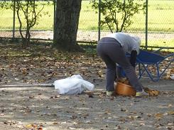 担任をもたない先生方は練習を見守りながら、校庭周囲の美化作業を行ってくれました。金曜日に児童と一緒に行った校庭周辺の落ち葉掃きでしたが、土日の間に落ち葉がいっぱいになってしまいました。運動会当日も、同様の状態であろうと予想しています。