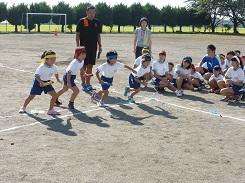 9月1日の朝の活動で、運動会の種目、全員で行う「赤白対抗スーパーリレー」の練習を行いました。