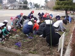 1月20日の清掃の時間に、みどりの少年団活動で花壇の除草作業を行いました。