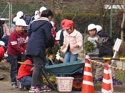 雪がチラチラと落ちてくる寒さの中でしたが、児童は熱心に作業をしました。低学年の児童は、高学年の児童が親切に世話をしてくれるので、楽しそうに作業をしていました。