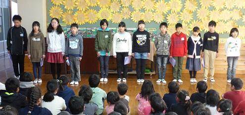 古典文の発表では、竹取物語、平家物語、徒然草、奥の細道、論語のそれぞれ一部と漢詩「春暁」を発表しました。現代語訳や解説を付け加えて発表してくれたので、低学年にも分かりやすかったと思います。今は大寒です。暖かさも増してきて「春暁」を感じるようになる春が待ち遠しいですね。