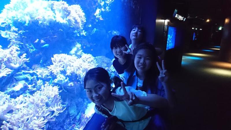 楽しいバイキングのあと、水族館を見学しました。みんなとても元気です
