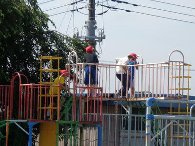 特に外遊びは、普段低学年に遊具を譲っているので、思い切りブランコをこいだり、竹馬を使ったりしている姿が見られました。