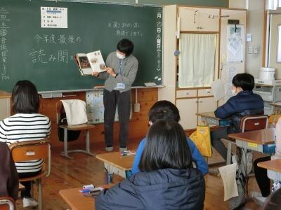 今日の朝の活動は、お話ポットの会の皆さんによる読み聞かせの時間でした。今回で今年度は最終なので、図書委員会より、児童からのお礼のお手紙をお渡ししました。1年間たくさんの絵本で子ども達の心を豊かにしていただき本当にありがとうございました。