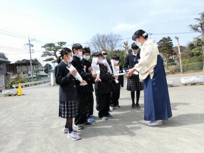 本日は令和2年度修了式でした。 教室のハウリングを考慮して、3階の音楽室で行いました。「修了」は、その学年に 相応しい児童としての学力と体力と、そして 心を身につけましたという意味です。コロナ禍で大変な1年でしたが、子ども達は、いつも元気いっぱいしっかり学び、修了式を迎えることができました。各学年の作文発表もあり、とてもりっぱな発表でした。 春休みに向けて児童指導主任、学習指導主任からのお話もありました。