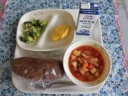 おうちでも作れる簡単給食レシピを紹介します。今回は、パンを主食とした献立です。