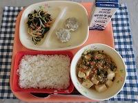 「ごはん マーボー豆腐 もやしとわかめのナムル ねぎまんじゅう」