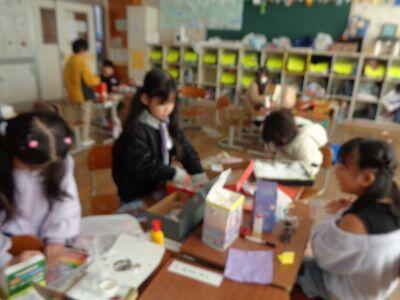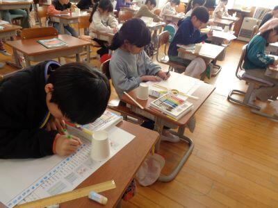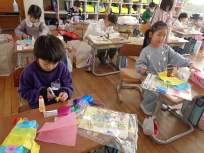 子どもたちは図工(図画工作科)が大好き。この日は、1年教室と3年教室で図工授業が行われていました。