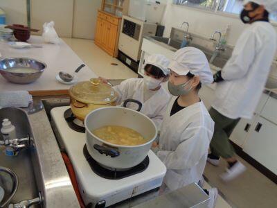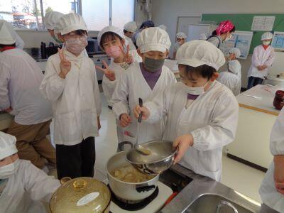 5年生が家庭科調理実習で「ごはん」と「みそ汁」を作りました。先生からの説明をよく聞き、班ごとに調理実習に取り組みました。どの班も、上手にできたようですね