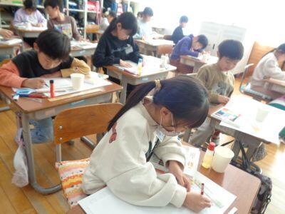しっとりと、真剣に学習活動に取り組む4年生の子どもたちです
