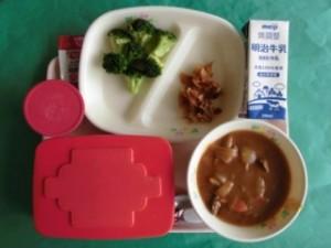 カレーライス 福神漬け ボイルブロッコリー アイスクリーム 牛乳