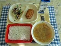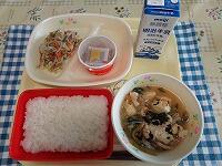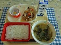 今日の献立は、「ごはん 豚肉のしょうが炒め 塩昆布あえ かんぴょう入りみそ汁 牛乳」でした。