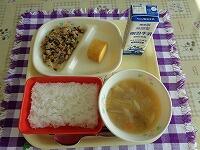 今日の献立は、「ごはん 納豆 筑前煮 玉ねぎのみそ汁 牛乳」でした。