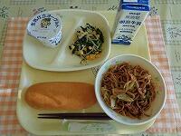 今日の献立は、「県産小麦のコッペパン 焼きそば ほうれん草のサラダ ヨーグルト 牛乳」でした。