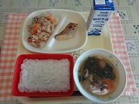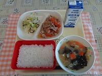 今日の献立は、「ごはん 焼肉 ひじきとツナのナムル 中華スープ 牛乳」でした。