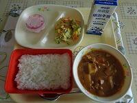 今日の献立は、「ごはん カツカレー コールスローサラダ 牛乳」でした。
